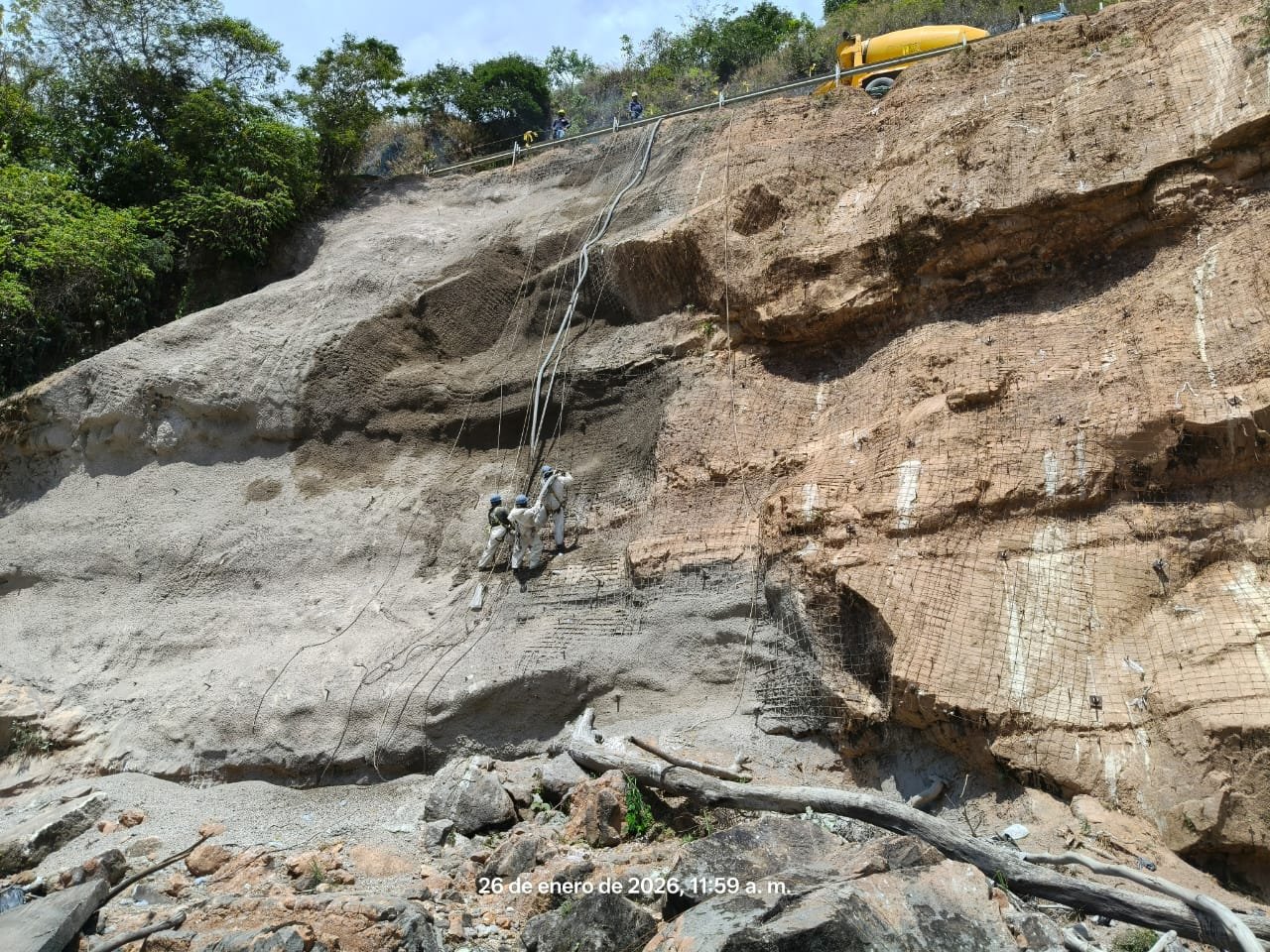 Actualmente, se continúan desarrollando las labores de intervención en el talud superior, en concordancia con las actividades programadas en el Plan de Mantenimiento 2026 y bajo los mismos criterios técnicos y de calidad.