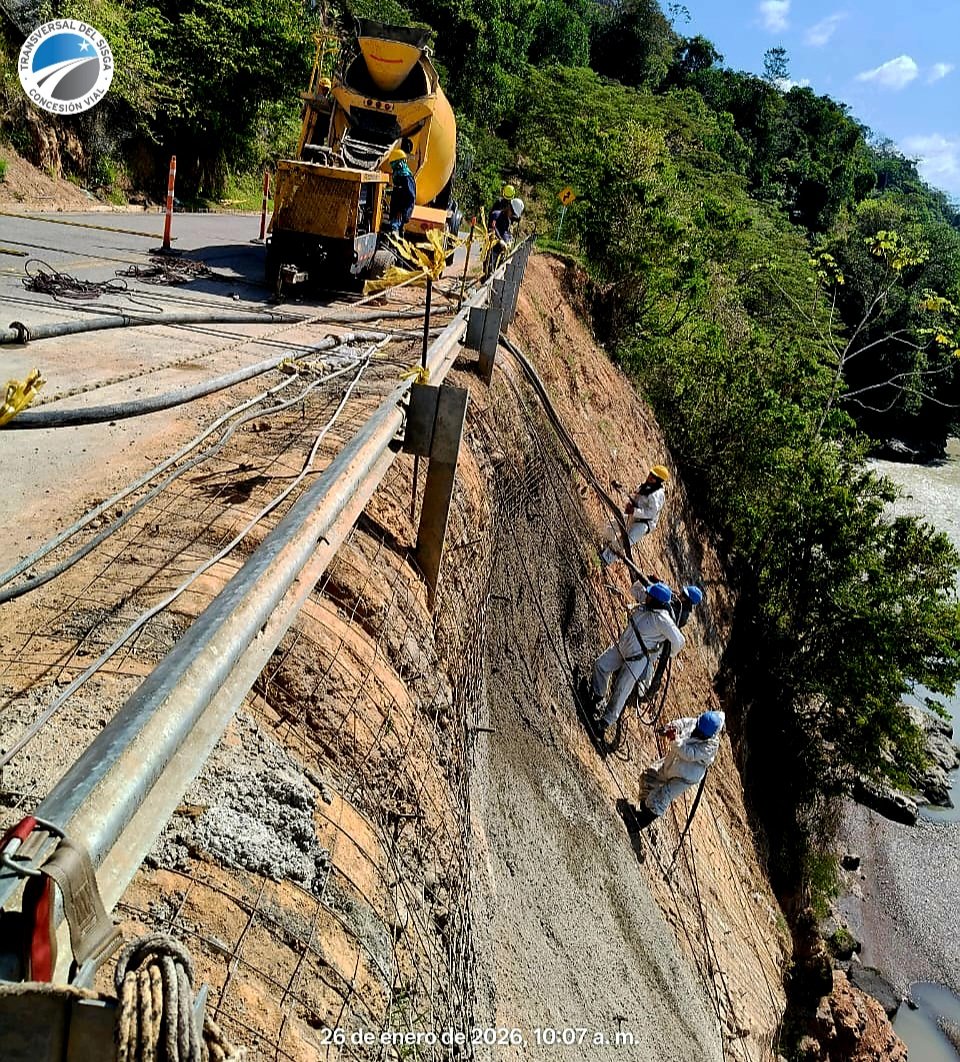En el marco de nuestro compromiso con el mantenimiento y la seguridad del corredor vial, se culminó al 100 % la protección del talud inferior en el PR 72+400, mediante la aplicación de concreto lanzado. Esta actividad fue ejecutada conforme a las especificaciones técnicas establecidas y a los estándares de calidad definidos para el proyecto.